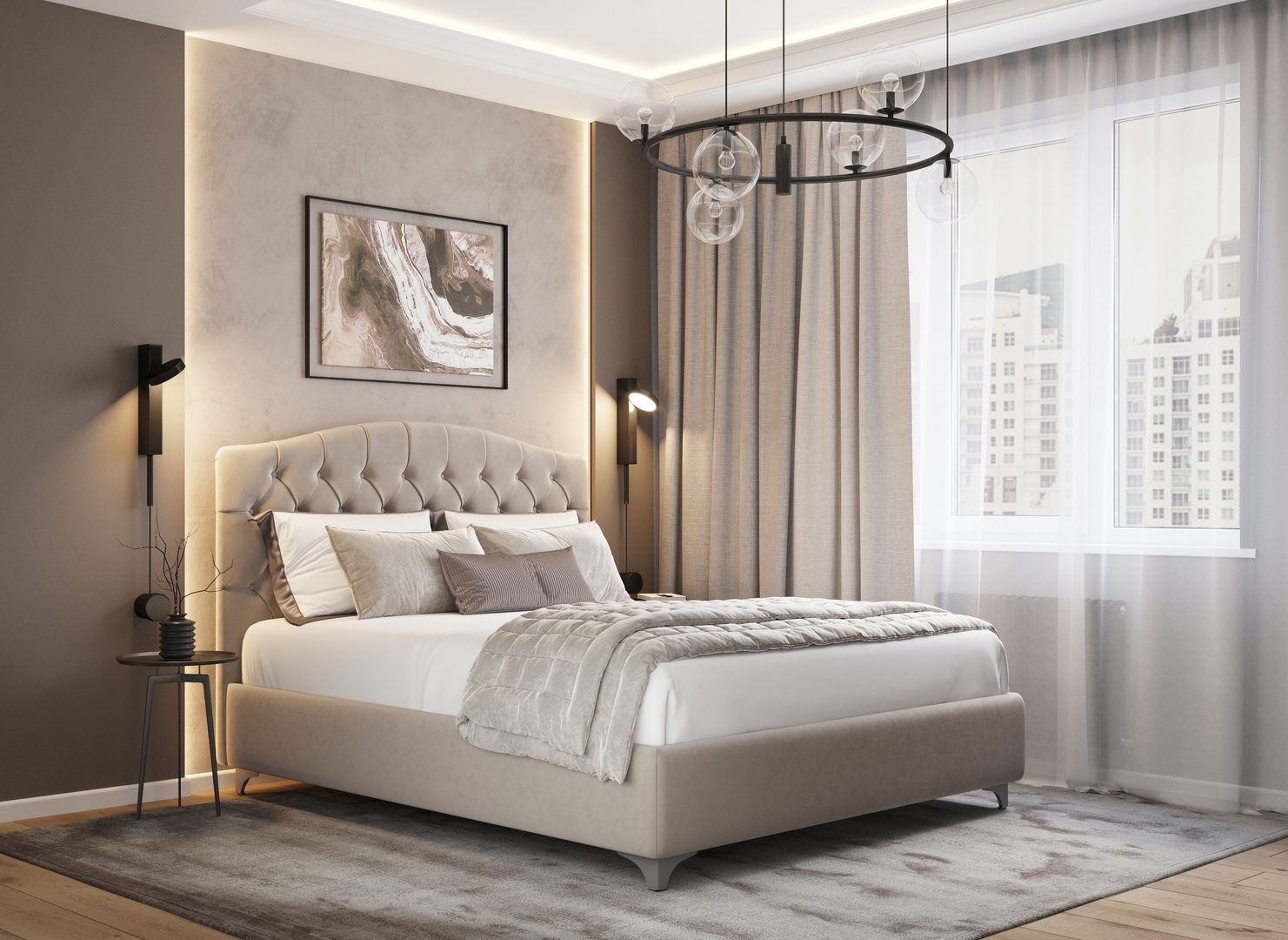 Разнообразие цветовой палитры позволит подобрать желаемый оттенок обивочной ткани. Использование светлых цветов поддержит настроение стиля «Сканди». Приглушенные насыщенные оттенки оформят кровать в стиле «Лофт». Нейтральные оттенки в цвет интерьера обыграют спальню в Современном стиле.